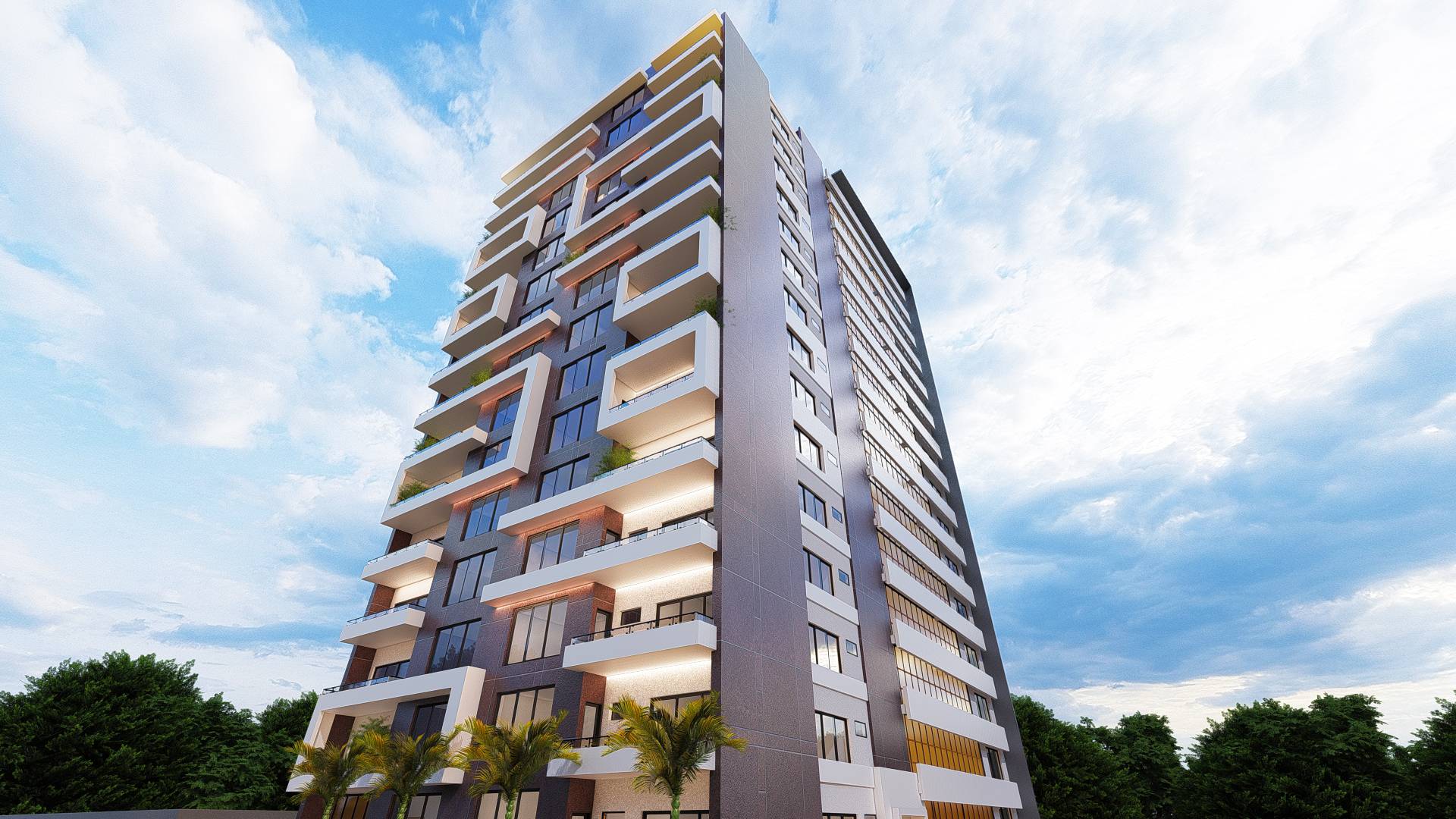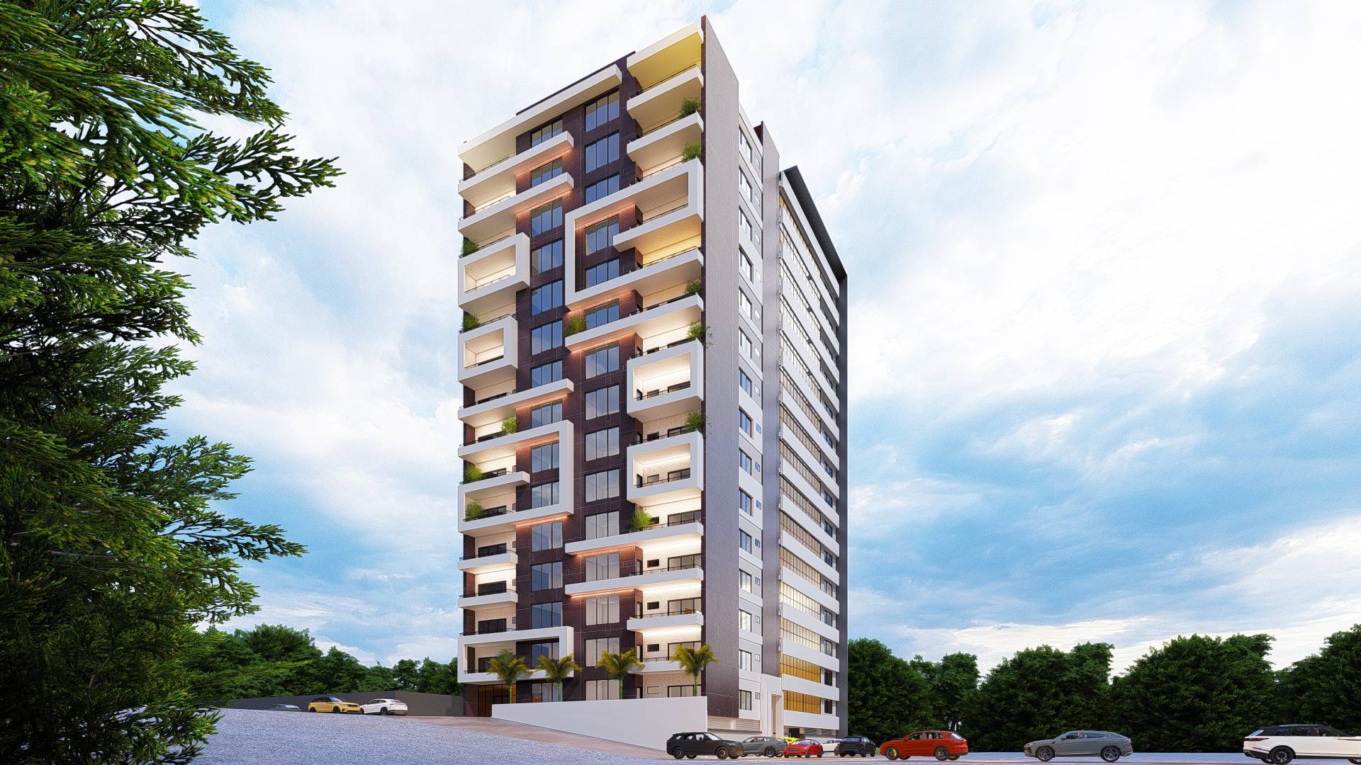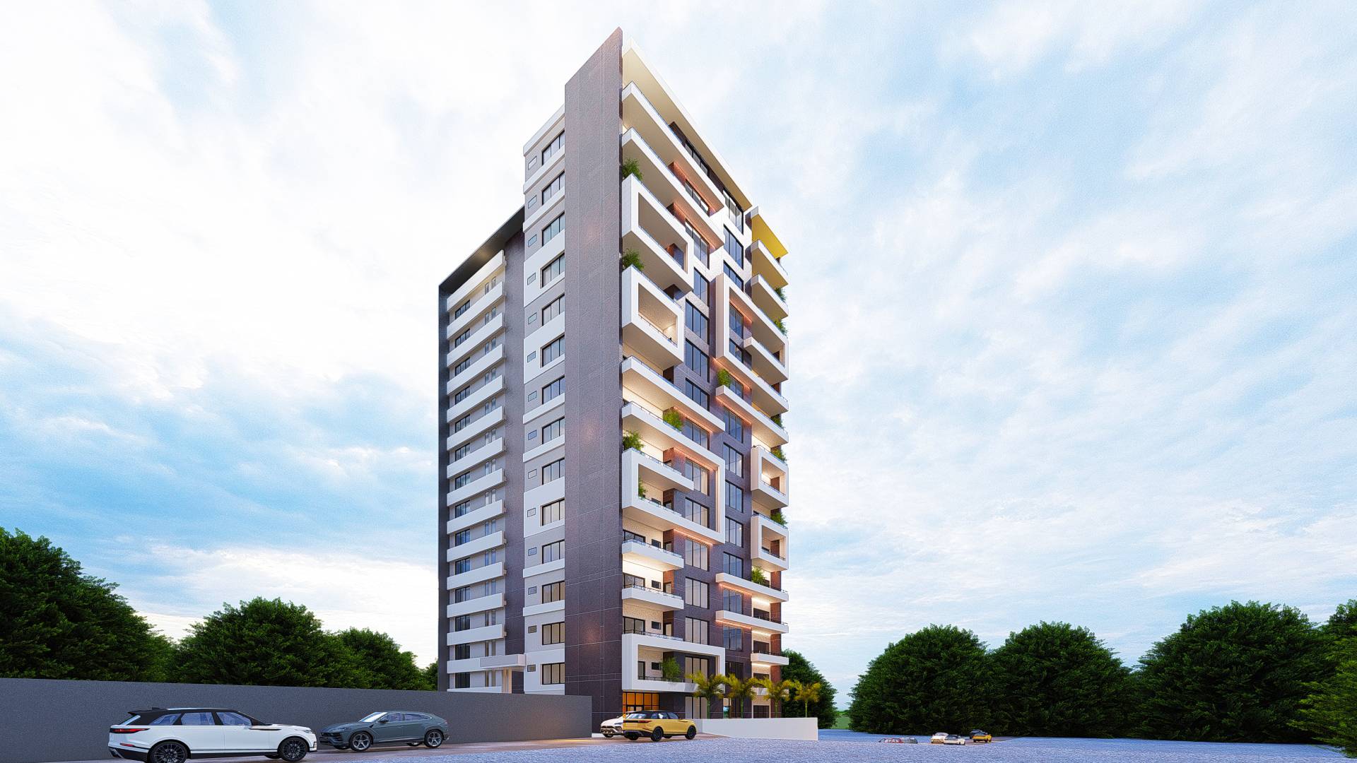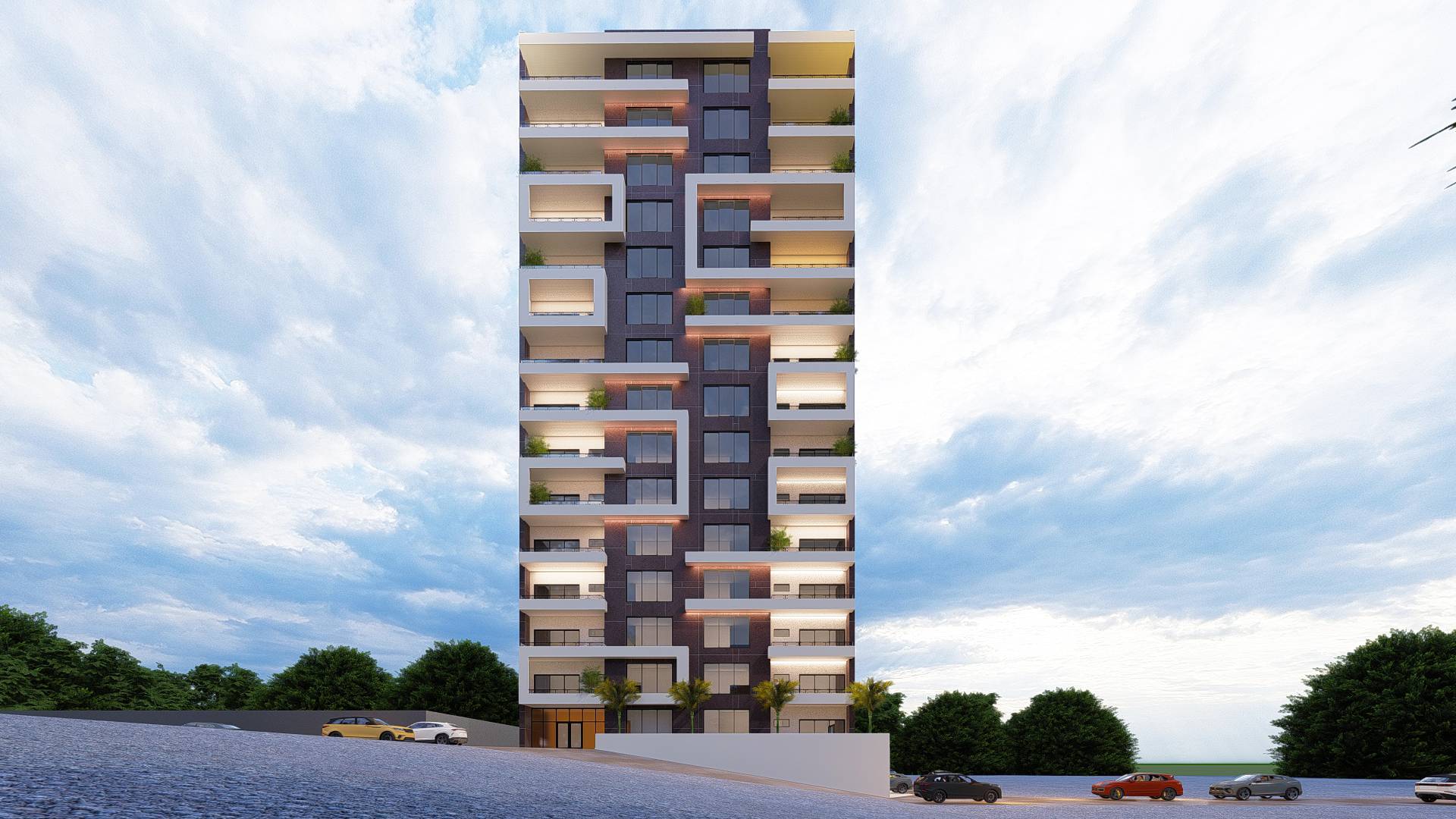Elégance et modernité définissent cette résidence collective ; bâtiment d’un collectif de 15 étages, a été conçu pour s’intégrer harmonieusement dans son environnement urbain. Son architecture est épurée et mise en valeur par un subtil jeu d’ombre et de lumière. Les balcons, spacieux et en relief offrent à chaque résident un espace intime et une vue imprenable sur la ville.