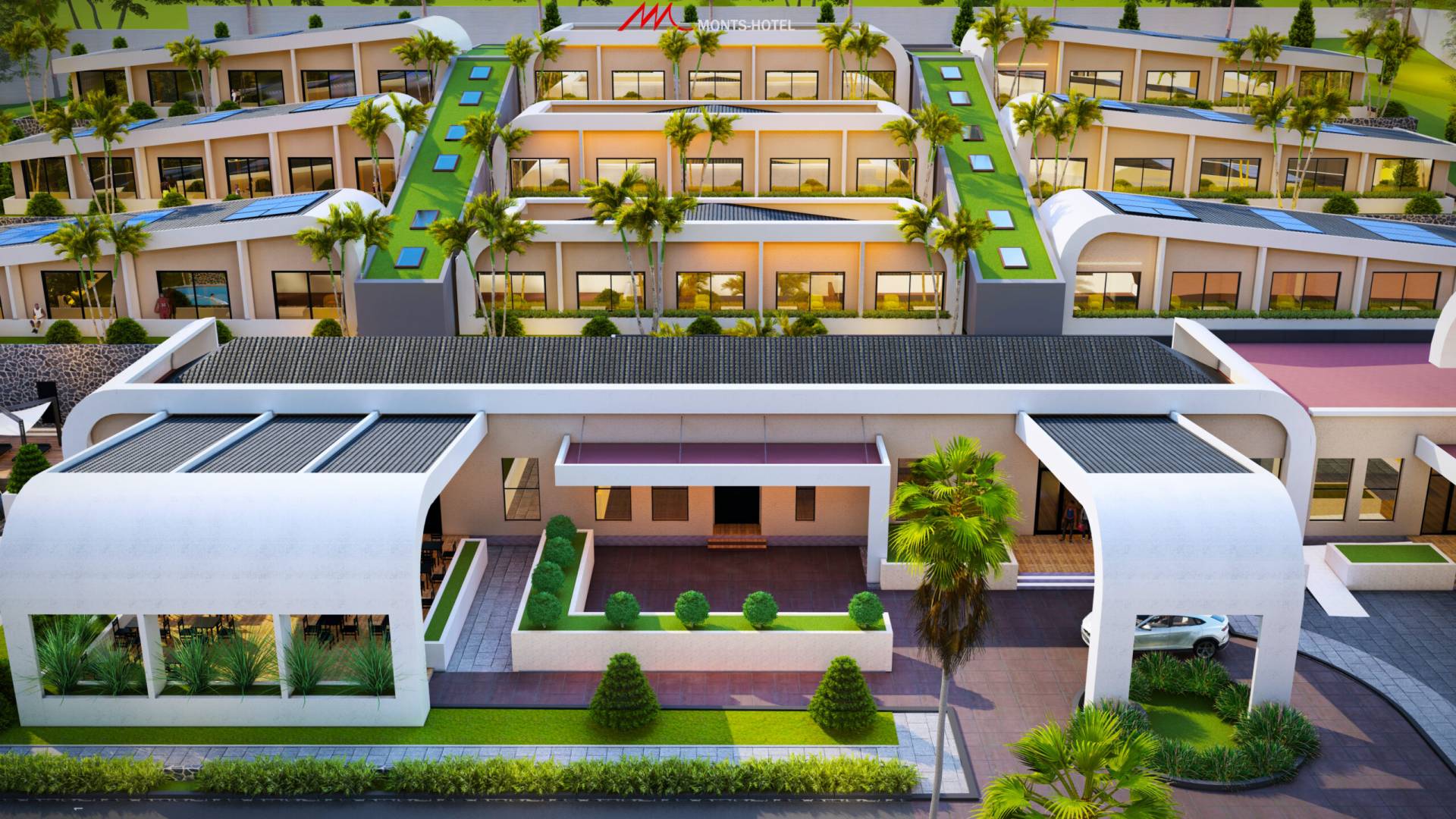 Ce complexe hôtelier unique épouse les courbes de la colline pour offrir à chaque chambre une vue plongeante sur les paysages pittoresques de Nkongsamba. Entre ses toitures en rubans immaculés et son énergie puisée au cœur du soleil, notre complexe redéfinit le luxe : une danse entre architecture audacieuse, sport et sérénité. L’organisation spatiale s’articule autour d’un axe central de services et de loisirs, créant une expérience fluide où l’architecture bioclimatique devient le moteur de l’esthétique du complexe.
