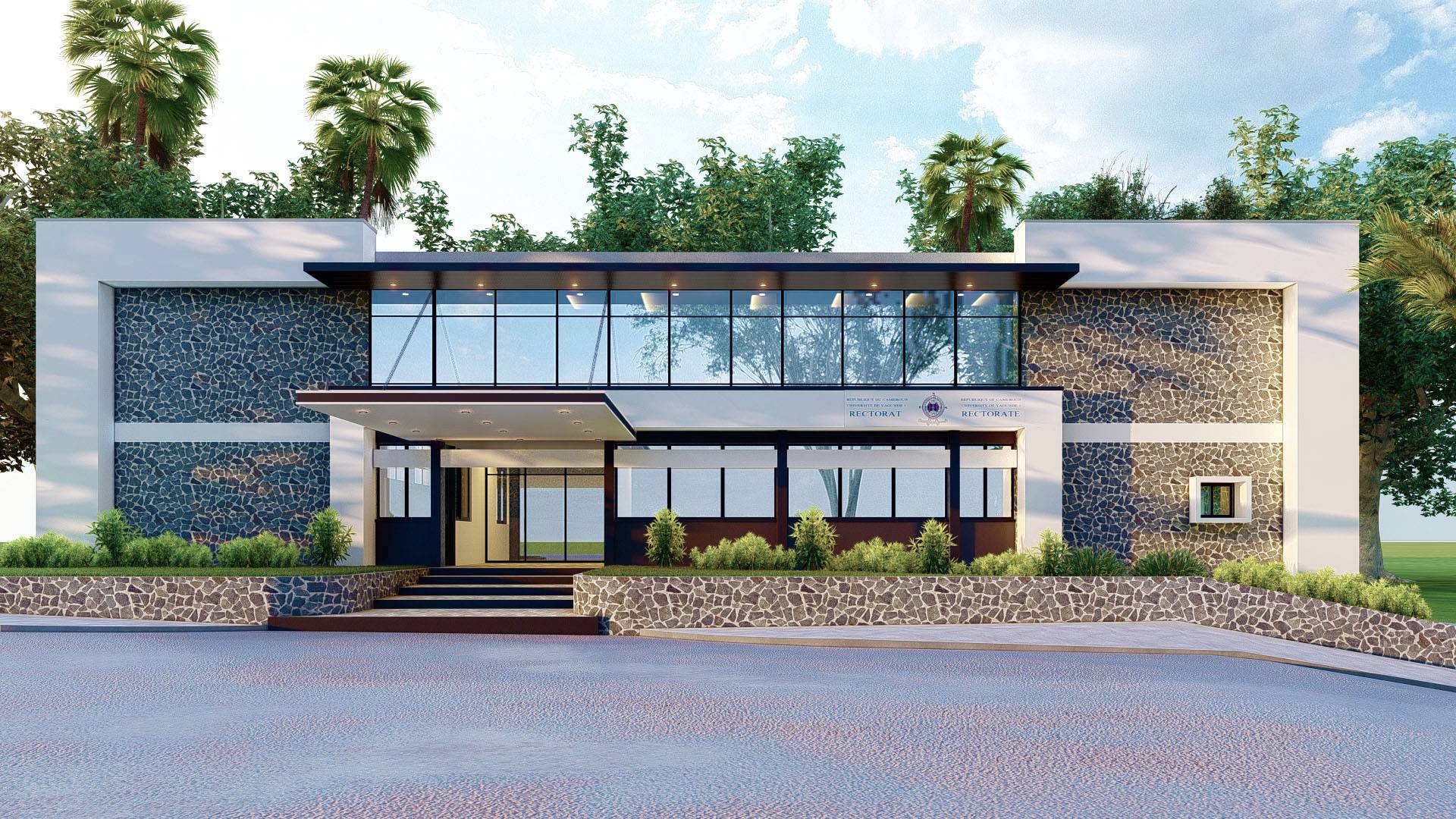 Ce projet de rénovation de la façade du rectorat de l’université de Yaoundé 1 vise à revitaliser l’image de cette institution emblématique, en respectant son héritage architectural tout en intégrant des éléments de modernité. L’intervention valorise les matériaux d’origine, tout en améliorant l’efficacité énergétique et l’attrait visuel du bâtiment, afin de créer une façade à la fois esthétique, fonctionnelle et représentative du dynamisme de l’université.
